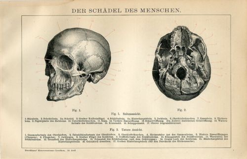 1894 HUMAN SKULL ANATOMY Antique Engraving Print