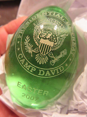 Title (ebay affiliate link): 2007 Bush White House Easter Egg Camp David Glass Green