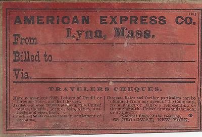 VINTAGE LABEL, AMERICAN EXPRESS CO. FROM LYNN, MASS.TRAVELERS CHEQUES