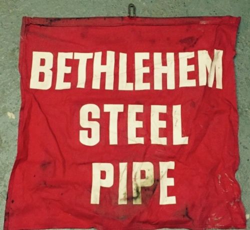 Title (ebay affiliate link): Rare 23" Antique 1930s Bethlehem Steel Banner Sign Cloth Banner Double Sided VTG