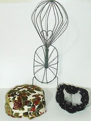Unique Twisted Metal Wire Millinery Hat,Wig Stand,Store Display & 2 Vintage Hats