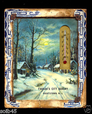 DATED 1917 THERMOMETER FAUSAK'S CITY BAKERY HIGHTSTOWN NJ WINTER SNOW SCENE MOON