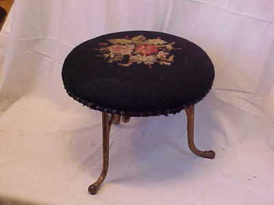 Title (ebay affiliate link): OLD DECORATIVE VINTAGE IRON LEG FOOT STOOL NEEDLEPOINT