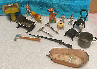 Antique/Vtg Cast Iron & Tin/Metal Collectible Miniatures~Furniture~Rifle~Figures
