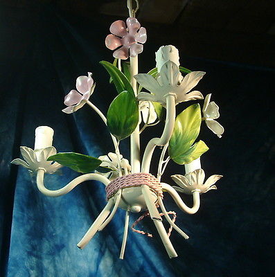 Title (ebay affiliate link): Vintage floral french tole chandelier flowers ceiling lamp light