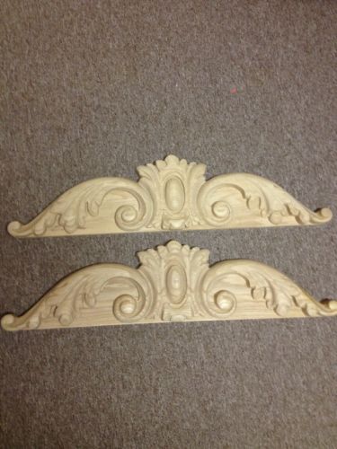 Title (ebay affiliate link): Two Solid Oak Wood Detailed Carved Dresser Furniture Tops Back Trim 27"