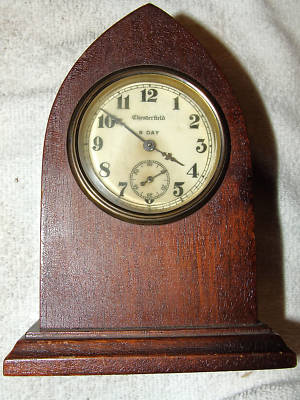 Title (ebay affiliate link): Antique CHESTERFIELD 8 Day Mahogany Mini Steeple Clock