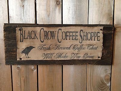 Title (ebay affiliate link): Primitive Barn Wood Sign Crow Coffee~5x14 Doll Rustic Vintage Antique Shoppe