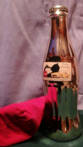 Title (ebay affiliate link): Gold Flashed Coca-Cola Drive Refreshed Bottle in Red Velvet Bag-1983