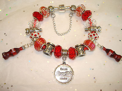 Title (ebay affiliate link): COCA COLA COKE EUROPEAN CHARM BRACELET BOTTLE CAP 19 CHARMS RED SILVER WHITE