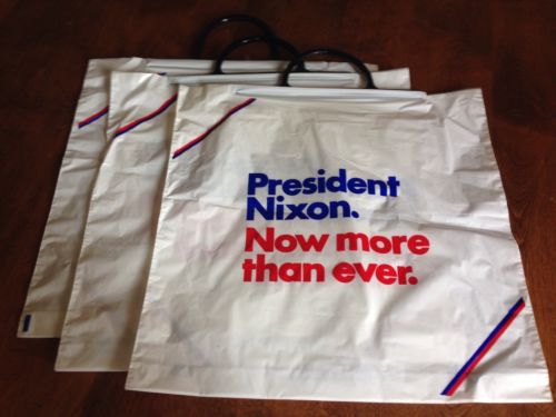 Title (ebay affiliate link): Lot of 3 Plastic bags "President Nixon.Now More Than Ever" Campaign Memorabilia
