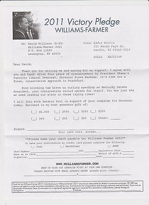 Title (ebay affiliate link): DAVID WILLIAMS KENTUCKY 2011 GOVERNOR CAMPAICN LETTER