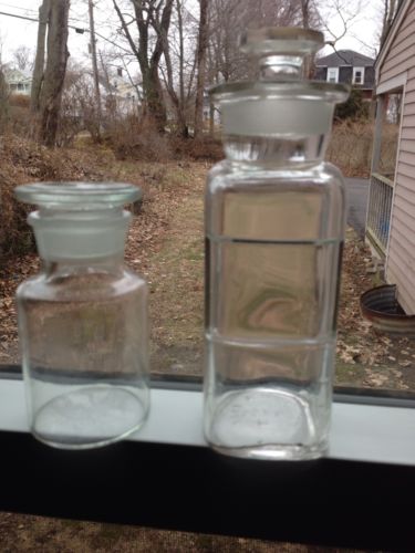 2 VINTAGE APOTHECARY BOTTLES with Stoppers