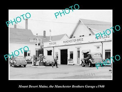 OLD LARGE HISTORIC PHOTO OF MOUNT DESERT MAINE, THE MANCHESTER CAR GARAGE c1940