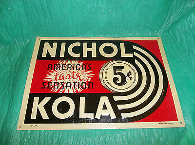 ANTIQUE NICHOL KOLA 5 CENT TIN EMBOSSED SIGN NICE NO RESERVE
