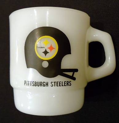 Vintage Anchor Hocking Milk Glass STEELERS mug WIIC-TV