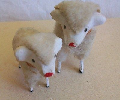 Pair Christmas Vintage German Wooly Baby Sheep Stick Legs Putz Antique Old
