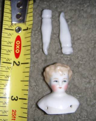 VINTAGE ANTIQUE BISQUE RMB DOLL HEAD ARMS