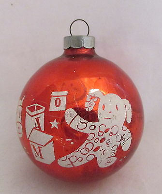 Vintage Shiny Brite Red Glass Ball Christmas Ornament White Stencil Toys Bears +