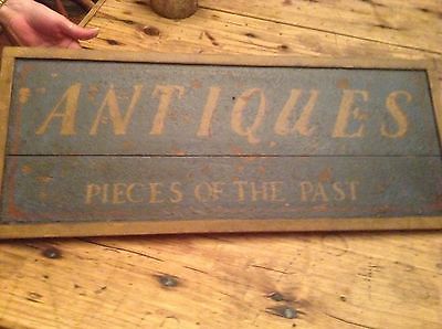 Early style "ANTIQUES" sign primitive wood farm shop blue mustard