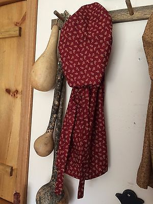 Primitive Prairie Bonnet Red with White Flower Design Handmade