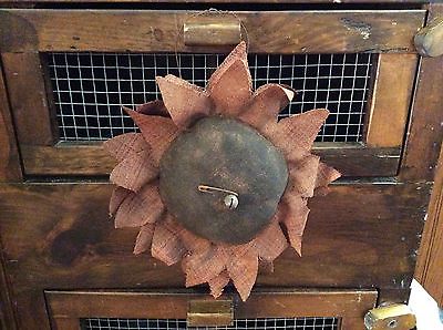 Huge xl large primitive sunflower hanger, bowl filler, ornie on rusty wire bell