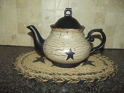 Primitive Crackle Ceramic Teapot ~ Black Stars ~ Country Farm Decor