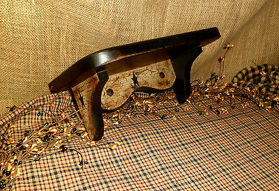 PRIMITIVE WOOD 11 3/4" SHELF PLATE SHELF TOO BLACK TAN CRACKLE COUNTRY DECOR