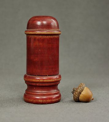 Lovely Antique Treen Wood Container Needle Sewing Thimble Case Box Old Red Paint