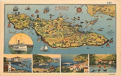 Catalina Island California~Cartoon Topographical Map~Compass~Water Ski~1935