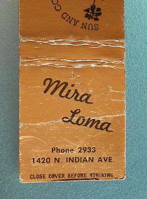 1950s Matchbook Mira Loma Hotel De Luxe Apartments Phone 2933 Palm Springs CA