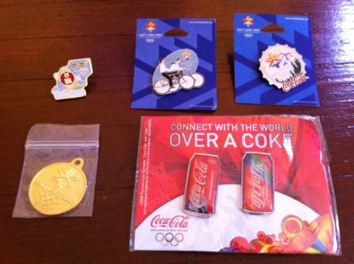 Lot Of 5 Pins Coca Cola 2002 Salt Lake Olympics M&M Skiing & Pendant