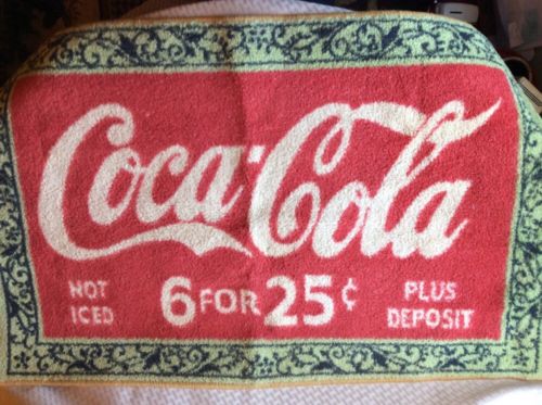 Title (ebay affiliate link): Coca-Cola 6 for 25 cents Area Rug Rubber Back 22 x 35