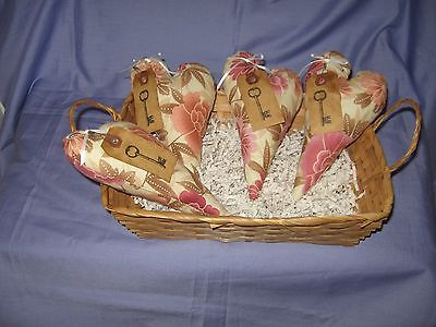 Handmade Primitive Fabric Bowl Fillers Hearts Grungy Tag,Rusty Pin,Bow Set 4