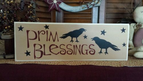 Title (ebay affiliate link): Primitive Country Shelf Sitter Sign...."Prim Blessings" with Stars and Crows