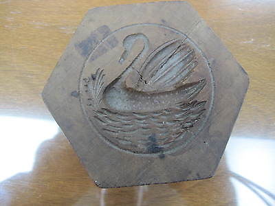 ANTIQUE PRIMITIVE WOOD SWAN BUTTER PRESS STAMP MOLD