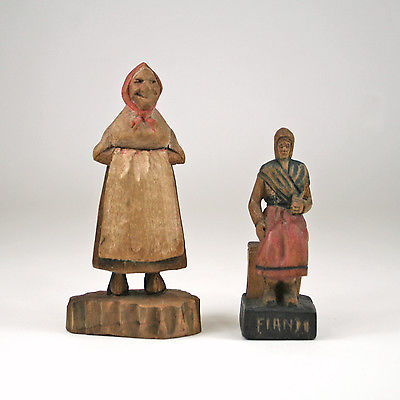 Title (ebay affiliate link): Antique Vintage Europe Folk Art Primitive Wooden Carved & Painted Women Set of 2