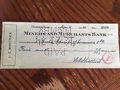 Title (ebay affiliate link): Miners and Merchants Bank Check L C Shattuck Signature Mining Bisbee Shattuckite