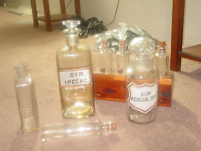Title (ebay affiliate link): Lot of 8 Antique pharmacy apothecary bottles Syr Ipecac Gum Acaciae opt Rare