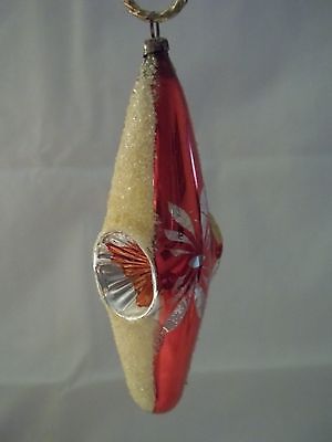 Vintage Glass blown Christmas ornament long silver/red w/white mica & 2 indents
