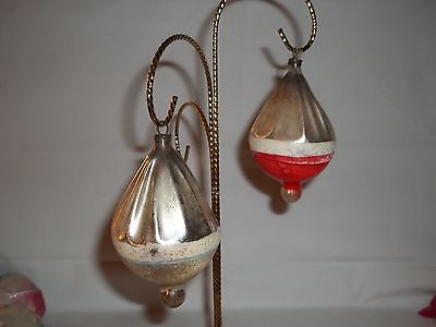 2 Vintage glass blown Christmas ornaments teardrop shape with finials