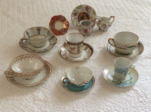 Title (ebay affiliate link): Mixed Lot Vintage Cups & Saucers Roses Lilies Limoges Davenport Nippon & More