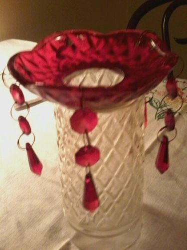 Set of 4 Ruby Red Crystal Bobeche Drop Prism Candle Drip Pan 4"