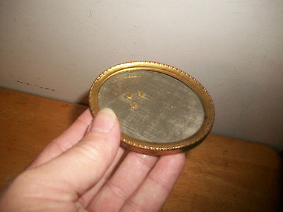 ORNATE ANTIQUE OVAL BRASS PICTURE FRAME 3.25X2.75 FREE STANDING WITH GLASS