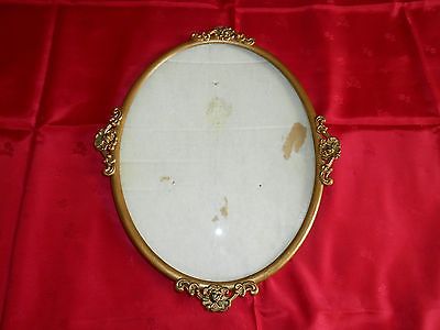 Antique Oval Metal 16 by 12 1/2" Curved Convex Glass Picture Frame.