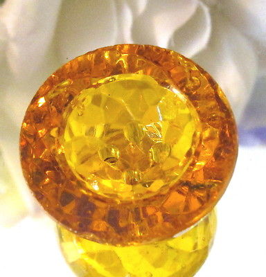 NICE DEPRESSION ERA FACETED CANARY YELLOW GLASS BUTTON DEEP WELL IN CENTER V9