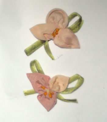 Title (ebay affiliate link): 2 Darling Pink Antique Ribbonwork Ribbon Flowers Doll Dress 1920 Silk Millinery