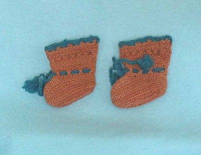 Antique Doll Booties in Teal and Brown