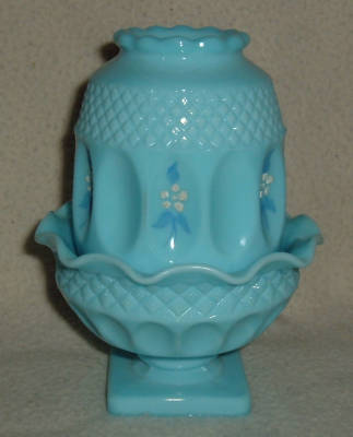 Westmoreland FAIRY LAMP painted flowers BLUE MILK GLASS