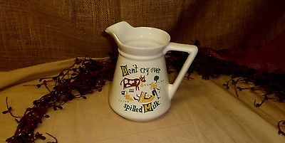 VINTAGE WHITE CERAMIC PITCHER DON'T CRY OVER SPILLED MILK COW MILK MAID BUCKET